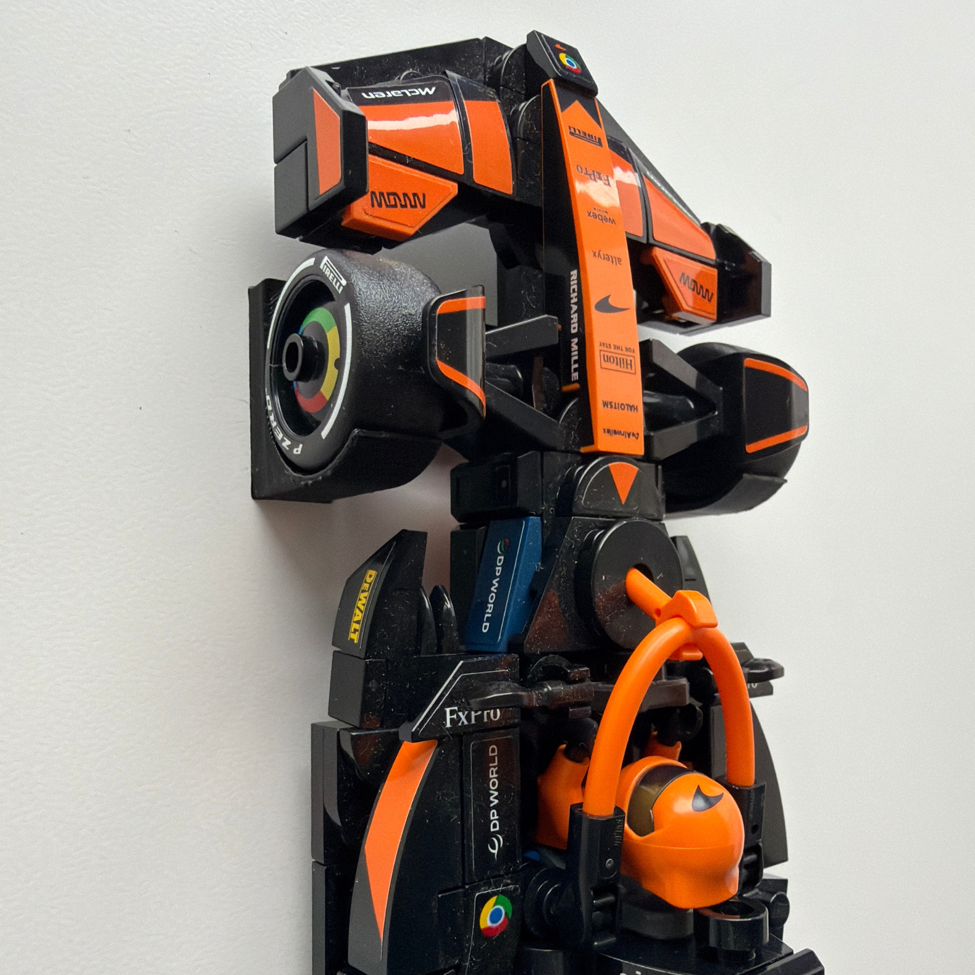 Wall mounts for displaying LEGO® Speed Champions sets vertically, ideal for collectors and motorsport fans. They save space and highlight the details of the cars in a safe and stylish way.
