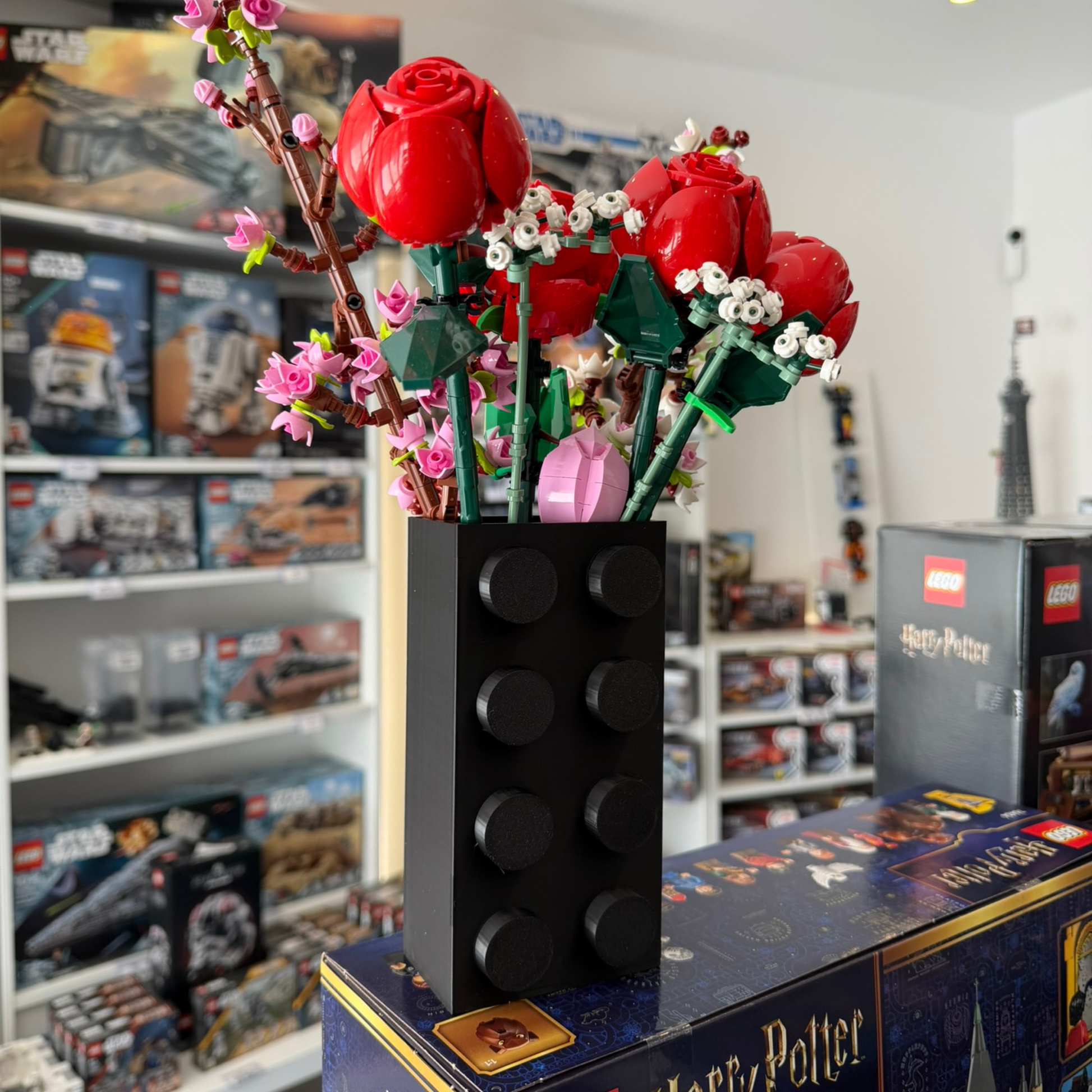 Dá um toque criativo e moderno à tua decoração com o Vaso para Flores LEGO Botanicals – preto, inspirado no icónico formato de peça LEGO. 🌺